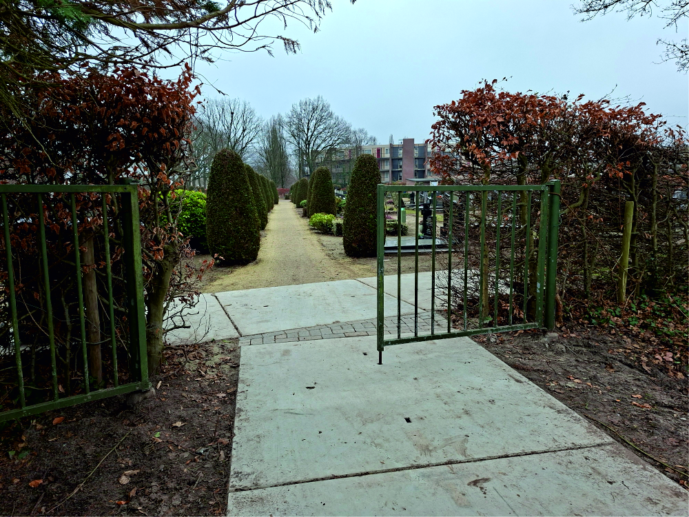 De huidige toegang naar de begraafplaats is te bereiken via “Het Hofpark”.